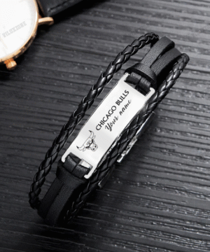 Be the first to review “Chicago Bulls NBA Personalized Leather Bracelet – Black Braided Strap with Stainless Steel Engraving Plate”