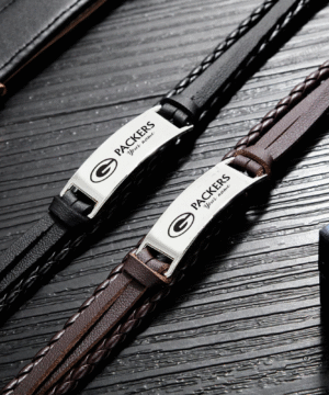 Be the first to review “Green Bay Packers NFL Personalized Leather Bracelet – Black Braided Strap with Stainless Steel Engraving Plate”