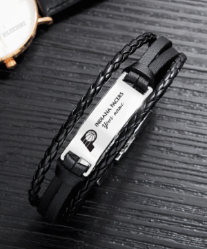 Be the first to review “Indiana Pacers NBA Personalized Leather Bracelet – Black Braided Strap with Stainless Steel Engraving Plate”