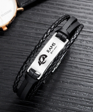 Be the first to review “Los Angeles Rams NFL Personalized Leather Bracelet – Black Braided Strap with Stainless Steel Engraving Plate”