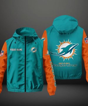 Miami Dolphins NFL Hooded Windbreaker Jacket | Custom Name Lightweight Fan Outerwear