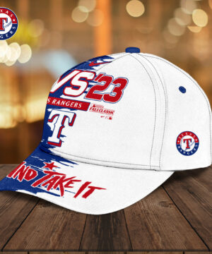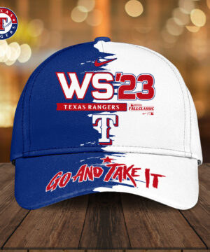 Texas Rangers MLB WS ’23 World Series Baseball Cap – Blue & White Split Design, “Go and Take It” Championship Edition